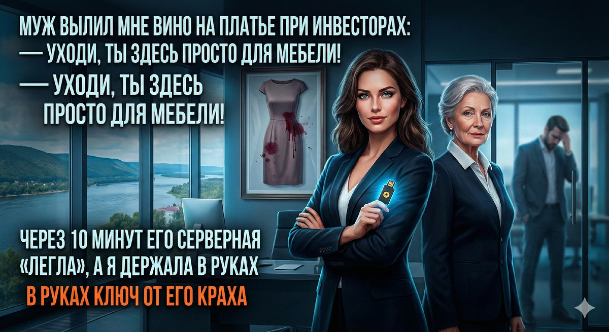 Я стою в офисе своей новой компании — «Zero Trust Security». У нас панорамные окна с видом на Жигулёвские ворота. На стене в рамке, под специальным стеклом, висит то самое светлое платье. Пятно вина на нём теперь выглядит как орден — напоминание о том дне, когда я перестала быть «мебелью».
