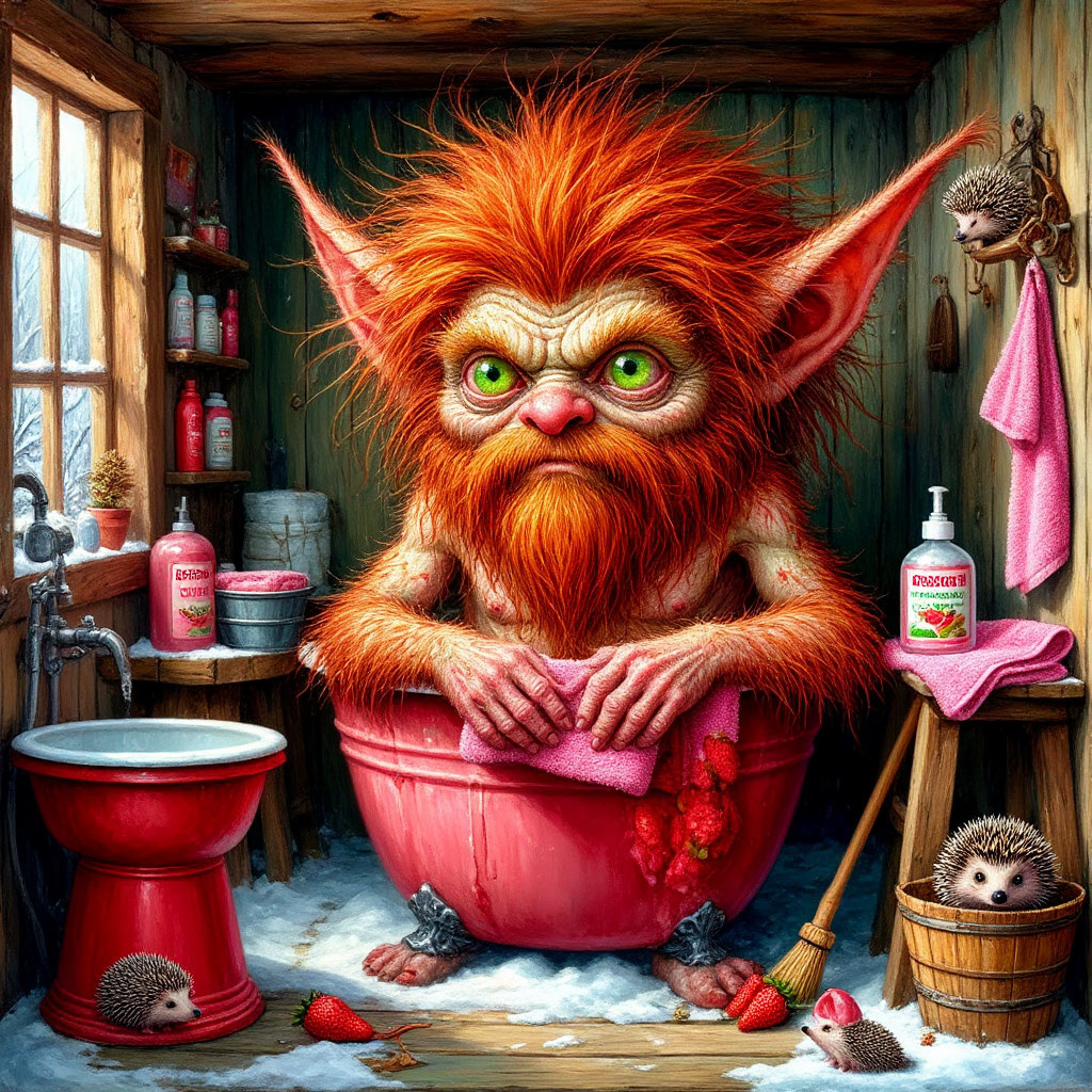 Мы перебрались на соседский участок. Кошки поскакали за нами. Сергей торжественно проводил лохматого хозяина баньки в соответствующее помещение. Некоторое время в бане было тихо. Потом раздалась какая-то возня, металлический звон, пыхтение, а потом из двери парной вышел довольный Банник. Свое мохнатое тельце он обвязал розовым Лёхиным полотенцем с рисунком из ёжиков, за версту от Банника разило земляничным мылом.