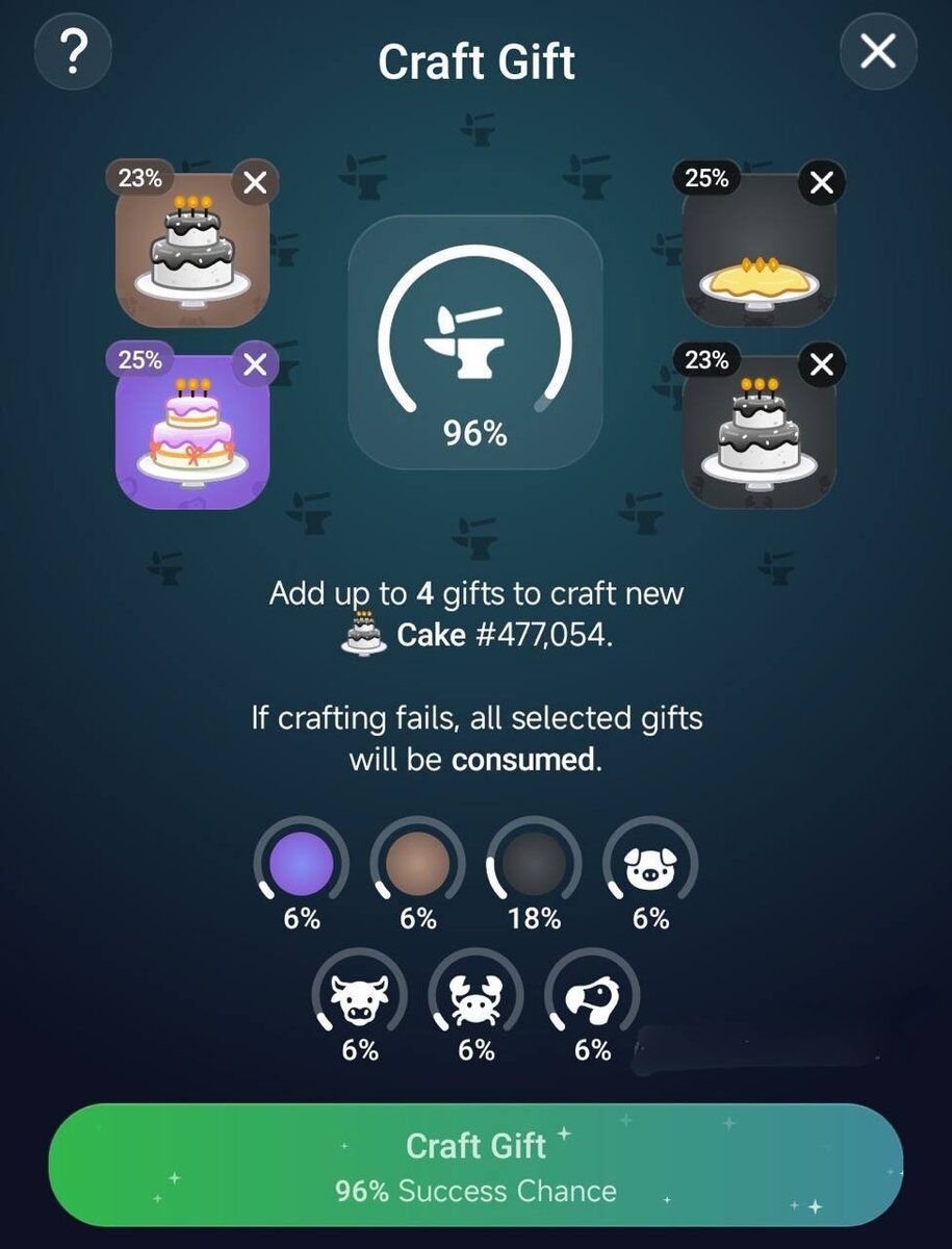 Крафт телеграм подарков теперь подсказывает что вам может выпасть при слиянии подарков