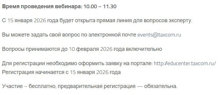 👆 ▪️ Если вы столкнулись с такой проблемой, то заявка оформляется на сайте: https://educenter.taxcom.ru/ вопросы можно задать по электронной почте: events@taxcom.ru до 10.02. включительно.