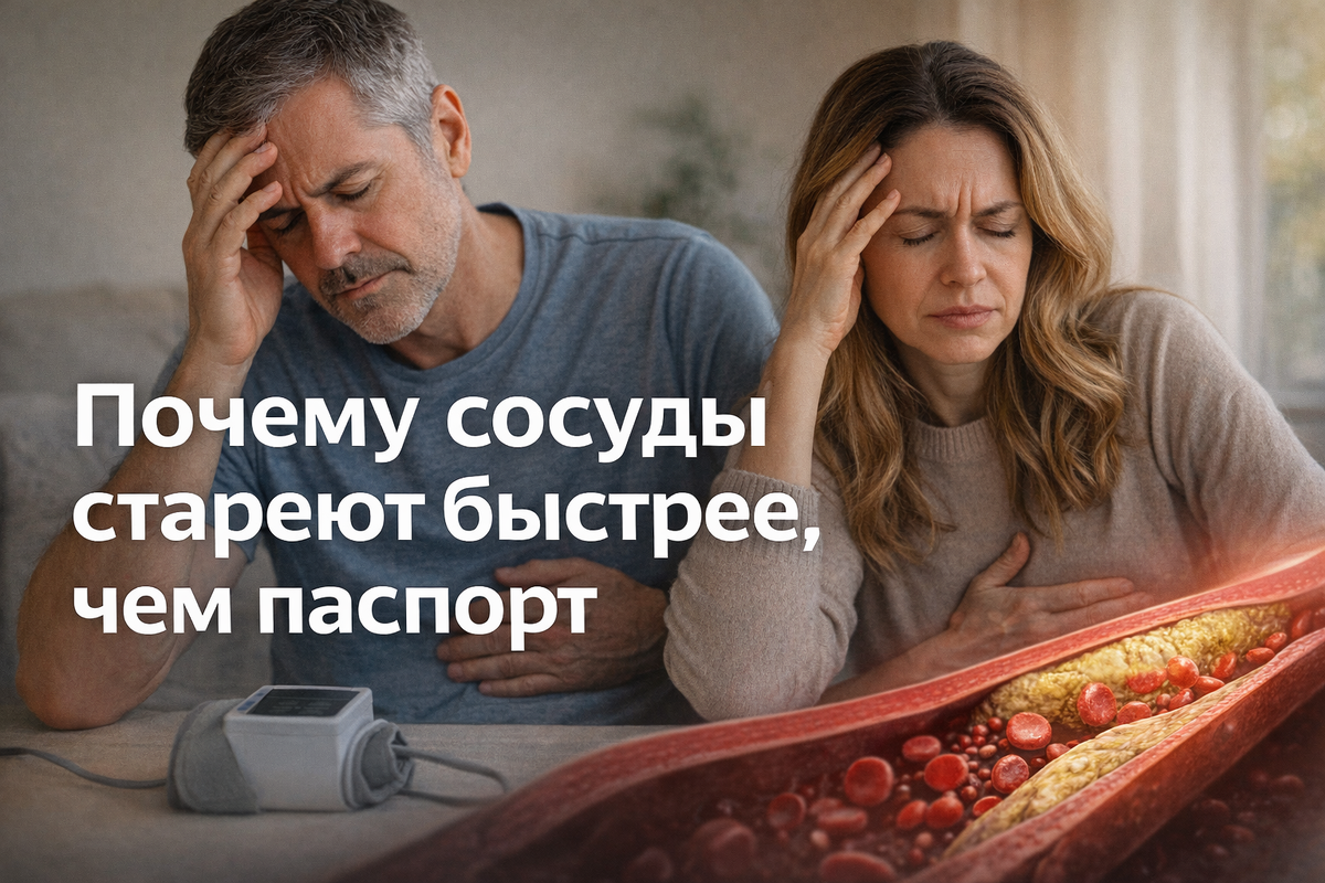 Создаётся ощущение, что организм стареет быстрее, чем должен. На самом деле так и есть — сосуды стареют раньше всего.
