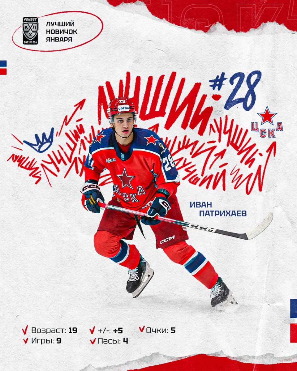 19-летний защитник Иван Патрихаев 🐴 набрал 5 очков в 9 играх января и впервые в карьере был признан лучшим новичком месяца КХЛ!