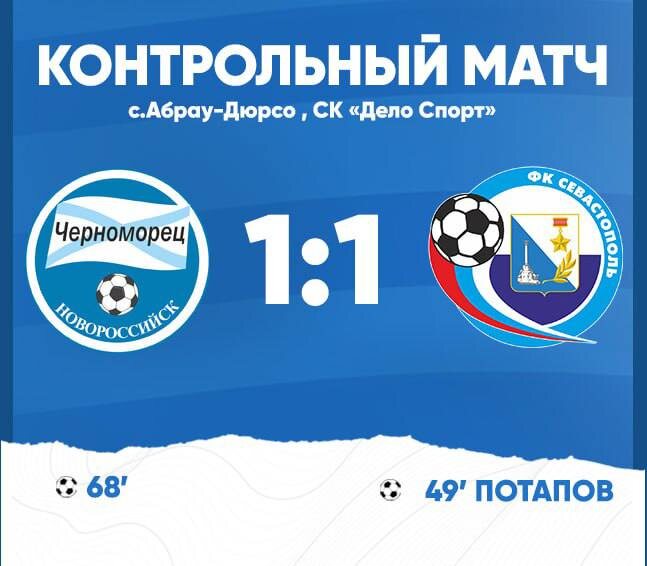 В Абрау-Дюрсо футболисты сразились с клубом из Новороссийска «Черноморцем». На 49 минуте Лев Потапов забил гол в ворота противника, открыв счет. Позже севастопольцы пропустили мяч. Завершили игру со счетом 1:1. 📺 СТВ в MAX