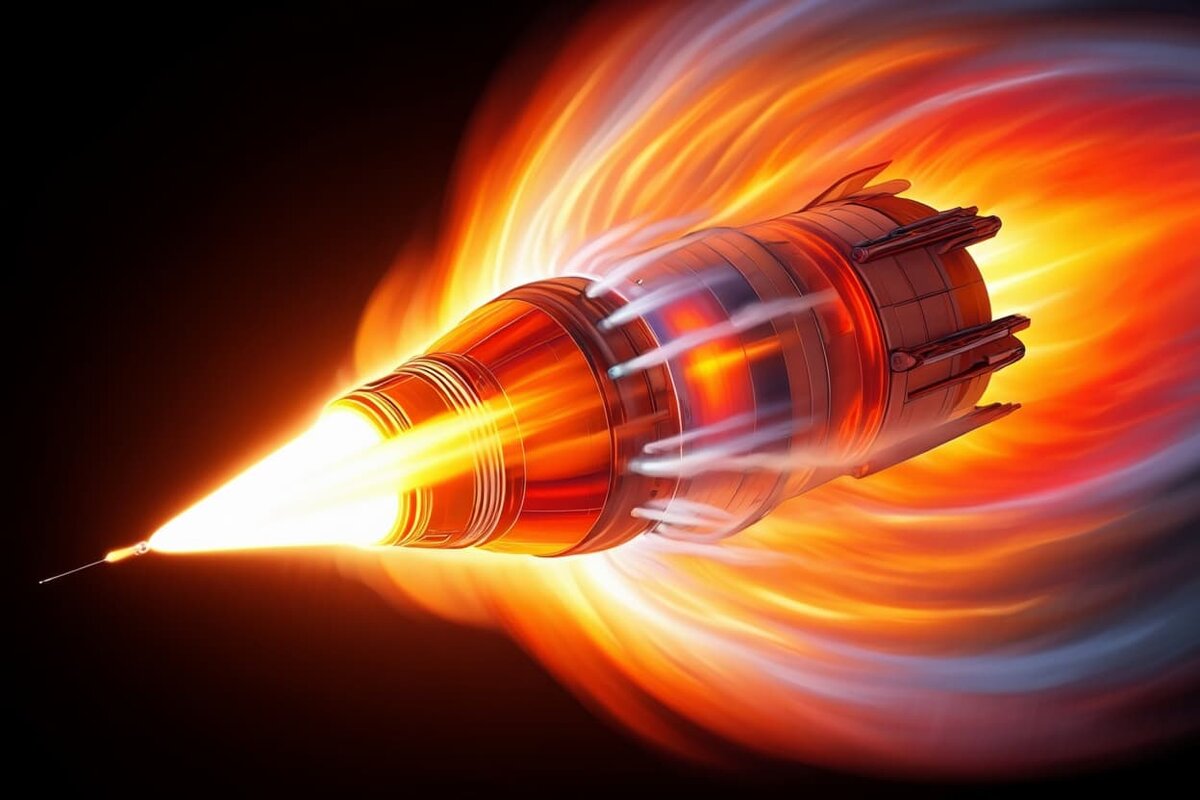 Раскалённая плазма у баллистической ракеты средней дальности (БРСД) «Орешник» возникает при резком торможении боевых блоков после полёта на скорости до 12 тысяч километров в час. О механизме образования такого эффекта рассказал разработчик систем радиоэлектронной борьбы (РЭБ) Игорь Потапов. По его словам, накопленной энергии «Орешника» достаточно для сокрушительного взрыва, даже если боевая часть ракеты не содержит взрывчатки. На этой скорости при резком замедлении снаряда огромное количество металлических элементов превращаются в микрокумулятивные струи. У нас получается расплавленная плазма, огромная поражающая, проникающая способность.
