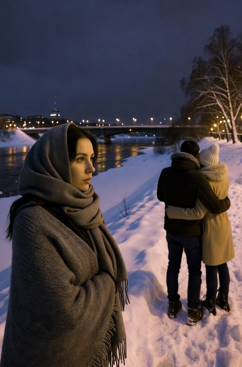 Муж стоял вполоборота, опираясь локтями на перила. На нём была та самая черная куртка с капюшоном, которую он купил в прошлом ноябре и которую Люба называла «курткой взрослого мальчика». Рядом с ним стояла женщина. Не очень высокая, в длинном бежевом пальто и белой вязаной шапке. Они смотрели в одну сторону — туда, где через реку перекинут старый металлический мост, подсвеченный жёлтым светом.