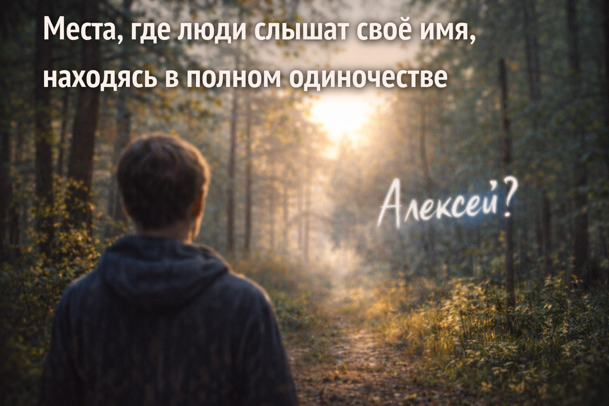 Ты уверен, что рядом никого нет — и вдруг кто-то произносит твоё имя. Не крик, не голос издалека. Чётко. Узнаваемо. Иногда почти шёпотом. Большинство людей в этот момент делают одно и то же: оборачиваются. А потом остаются с ощущением, которое сложно объяснить — смесью тревоги и растерянности. Потому что рядом действительно никого нет. Я собрала реальные истории и попыталась понять, почему такие случаи чаще происходят в определённых местах, а не где угодно. Чаще всего своё имя слышат люди в лесу — особенно в глухом, без троп и шума. Один турист рассказывал: «Я шёл уже третий час. Было абсолютно тихо. И вдруг — моё имя. Не эхом. Не показалось. Я даже ответил». Психологи объясняют это так: