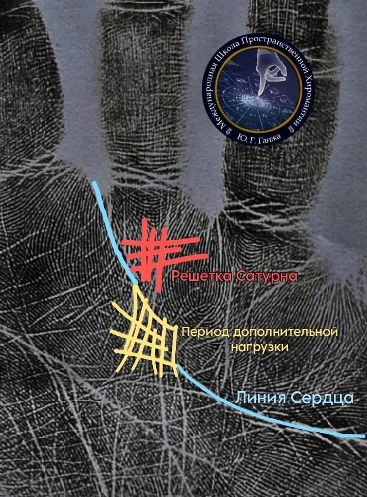 Например, можно встретить решетчатое образование в коридоре Сатурна, примыкающее к линии Сердца и состоящее из горизонтальных линий - линий Влияния в линию Сердца и вертикальных - линий дополнительной ответственности, взятой на плечи обладателя знака. Их может быть несколько, столько сколько у вас новых дел и забот, родились внуки - линия, добавилось хобби или работа - линия, заботитесь о старых родителях - линия, и т. д.