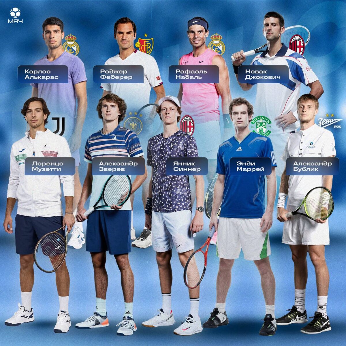 ... «Спартак». За какие клубы болеют теннисисты? Главная звезда нынешнего поколения и победитель Australian Open-2026 Карлос Алькарас топит за «Реал», также как и легендарный Рафа Надаль. Оба, кстати, залетали на празднование чемпионства «сливочных» в 2022 году. Другие ветераны, Роджер Федерер и Новак Джокович, поддерживают «Базель» и «Милан» соответственно. Сербу даже пришлось в открытую болеть за «ПСЖ» в финале ЛЧ-2025 ввиду неприязни к главному врагу «россонери» «Интеру». Норвежец Каспер Рууд является фаном «Ливерпуля» и очень хочет видеть в составе Эрлинга Холанда, Даниил Медведев в свое время отказался от поддержки ЦСКА (много лузали в еврокубках) и пристрастился к «Баварии», а американец Тэйлор Фриц – без ума от Криштиану Роналду. Главное удивление – Стефан Циципас. Грек болеет за (!) «Спартак», в составе которого большую часть карьеры отыграл его дед по маминой линии Сергей Сальников. Похожая история и у Энди Маррея с «Хибернианом». @myach