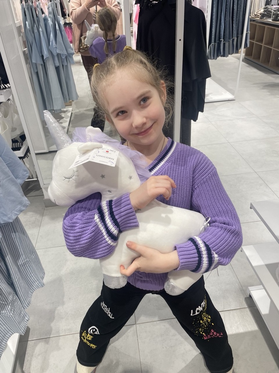 Как только дочь отвлеклась на телефон, мы пошли и купили единорога. Да, игрушка, возможно, на несколько дней. Но счастливые глаза ребёнка — бесценны. Вике, конечно, это не понравилось… но кто на это обращает внимание? Точно не я!