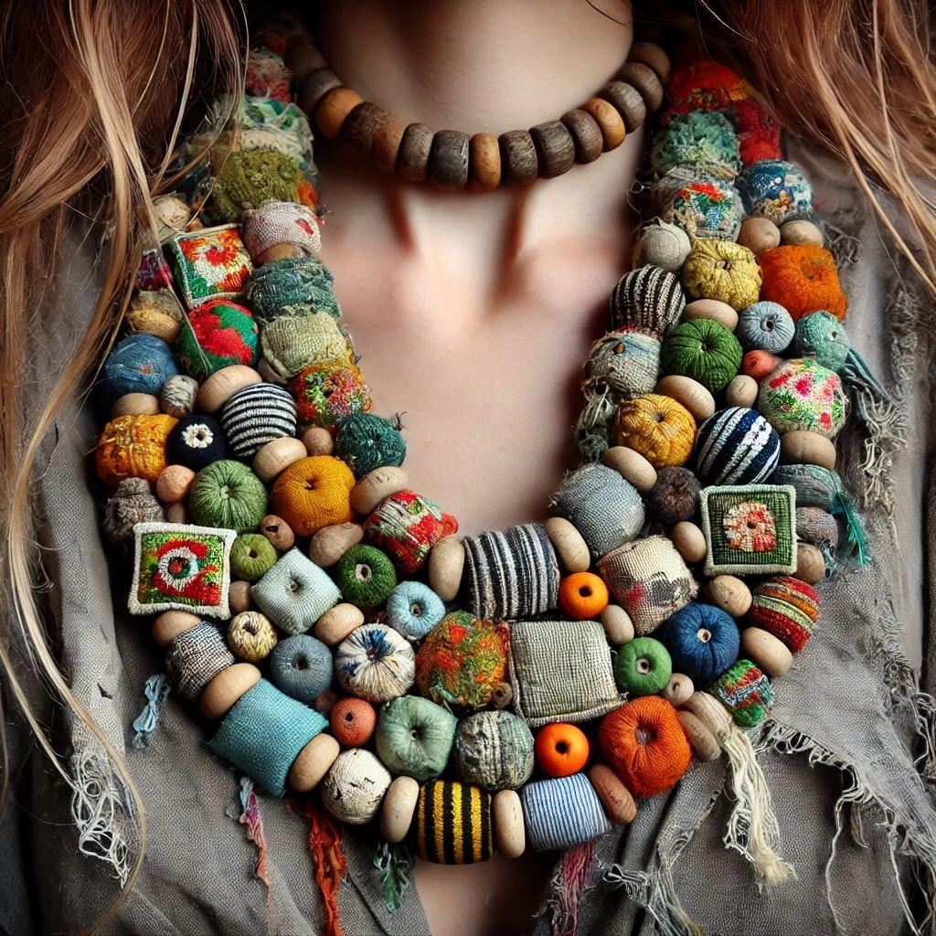 А вот сделать подобное ожерелье сможет наверное любая мастерица и использовать для этого любые остатки ткани, которые есть в наличии.
