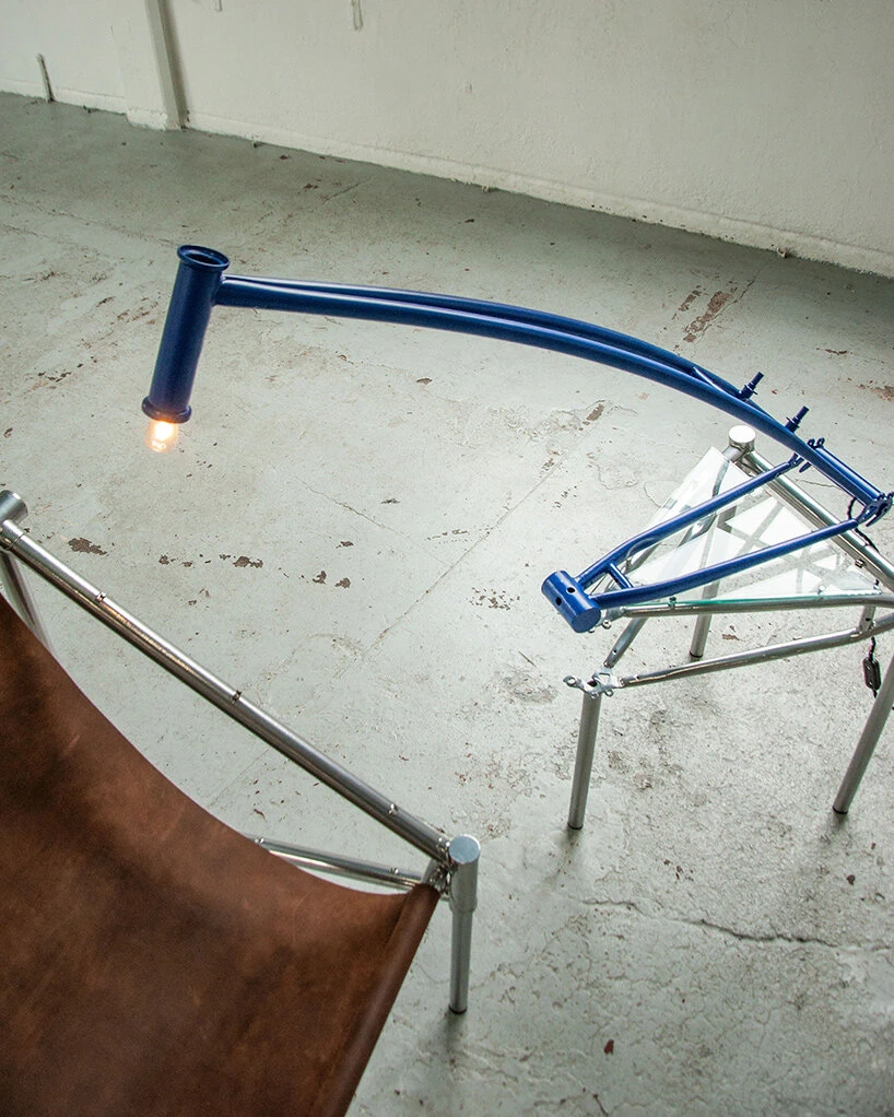 Брошенные велосипеды на улицах городов — привычная картина. Обычно на них не обращают внимания, но дублинский дизайнер Кара Кампос увидела в них потенциал. Её коллекция Objects from Frames (OFF) превращает старые велосипедные рамы в мебель — стол, стул, лампу. OFF — хороший пример того, как утилитарный объект может получить вторую жизнь. Кампос заметила, сколько велосипедов остаётся на улицах — сломанных, ржавых, забытых. Рамы структурно целые, но по назначению их уже не используешь. Вместо того чтобы отправить их на свалку, дизайнер решила превратить их в мебель. Коллекция Objects from Frames строится на идее повторного использования. Это не переработка в чистом виде — материал не переплавляется и не теряет свою историю. Рамы разрезаются, но сохраняют оригинальные диаметры труб, сварные швы, точки крепления колёс и цепей. Царапины, сколы краски, неровности металла — всё остаётся видимым. Дизайнер не скрывает происхождение материала, а делает его частью эстетики. Стол — столешница из с