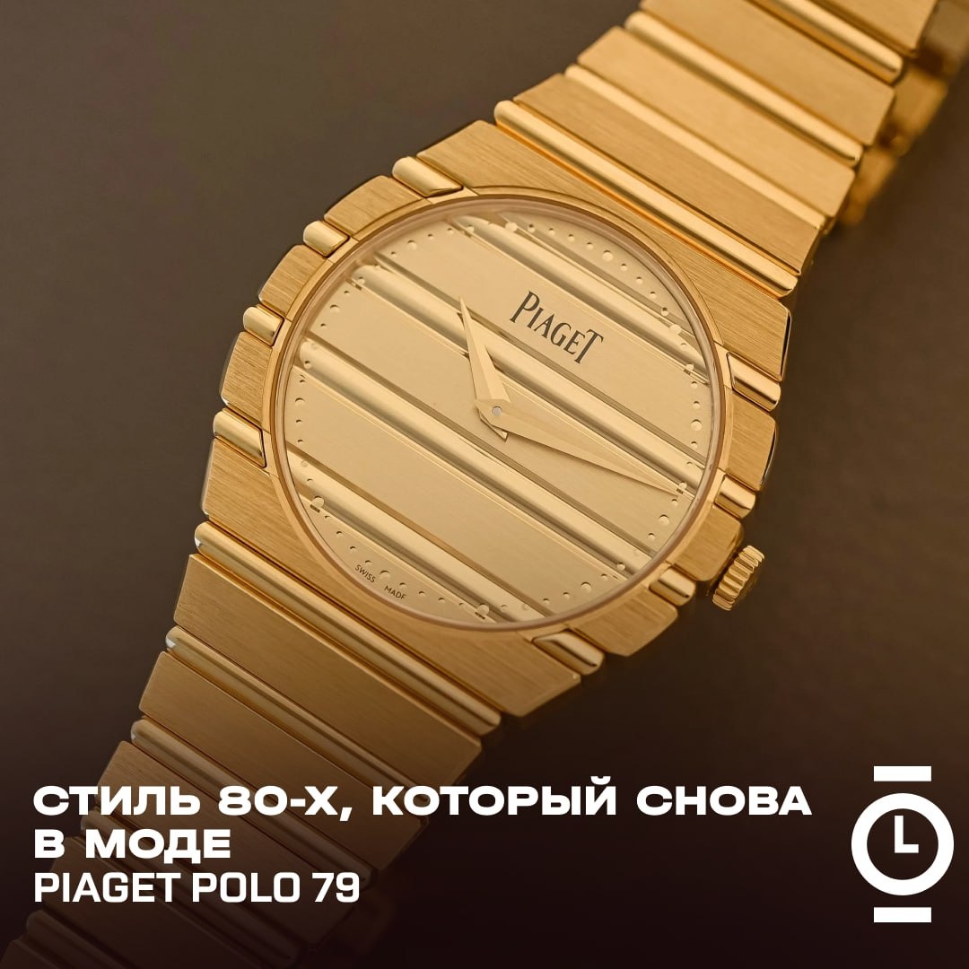 #обзор_WD История Piaget Polo — редкий пример того, как часы, изначально созданные вопреки канонам, сумели не просто стать символом эпохи, но и органично вернуться десятилетия спустя. Это не история «ответа конкурентам», а самостоятельная линия, в которой Piaget всегда шёл своим путём. Модель Polo появилась в 1979 году, в период расцвета дома Piaget под руководством Ива Пьяже. Импульсом послужил запрос рынка: состоятельной, космополитичной аудитории хотелось спортивных часов высокого класса с интегрированным браслетом. Audemars Piguet и Patek Philippe уже предложили свои версии этой идеи — резкие, стальные, индустриальные. Piaget выбрал иной подход. Вместо стали — золото. Вместо брутальности — гедонизм и ощущение беззаботной роскоши. Оригинальный Piaget Polo представлял собой полностью золотые часы с корпусом, браслетом и циферблатом, объединёнными горизонтальными гофрами — гадронами. Полированные и сатинированные поверхности чередовались, создавая ритм, узнаваемый с первого взгляда