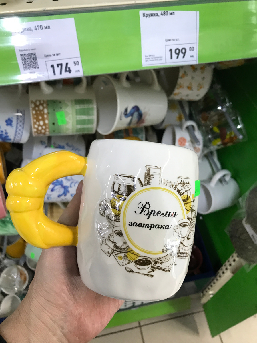 Снова новую коллекцию выставили Интересная посуда, таких кружек еще не было. Со стороны смотрятся красиво! Выполнена из керамики Следующий однотонный вариант, тоже из керамики с вязаным узором Объем у кружки: 480 мл Стоимость 199 руб Кружка с ярким принтом для повседневного использования Цена 199 руб Объем большой: 700 мл. Съемное ситечко-колба из нержавеющей стали предотвращает попадание заварки в чашку Цена 199 руб Состав: полипропилен Размер: 300* 195* 170мм Ш Тряпки для уборки в рулоне, тоже нужная вещь В рулоне 50 штук. Подходят для сухой и влажной уборки Цена 399 руб На полку можно поставить книги, цветы, элементы декора Материал: массив дерева, сталь Полка идет в комплекте с креплением Цена 249 руб Легко собирается, при желании можно раскрасить. Выполнен из фанеры Штора для ванной, в ассортименте Размер: 180* 180 см Цена 299 руб Крышка дополнена боковыми клипсами для фиксации Подходит для компактного хранения аксессуаров для творчества и других нужных вещей Сорочка женская с кр