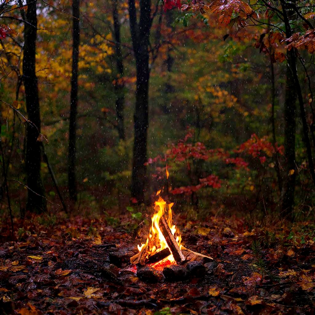 В дождь лучше всего работает тип костра «Шалаш» (для растопки) — он дает высокую тягу и сушит дрова пламенем. А для долгого горения, когда угли уже есть, переходите на «Таежный» костер (бревна кладутся друг на друга или звездой).