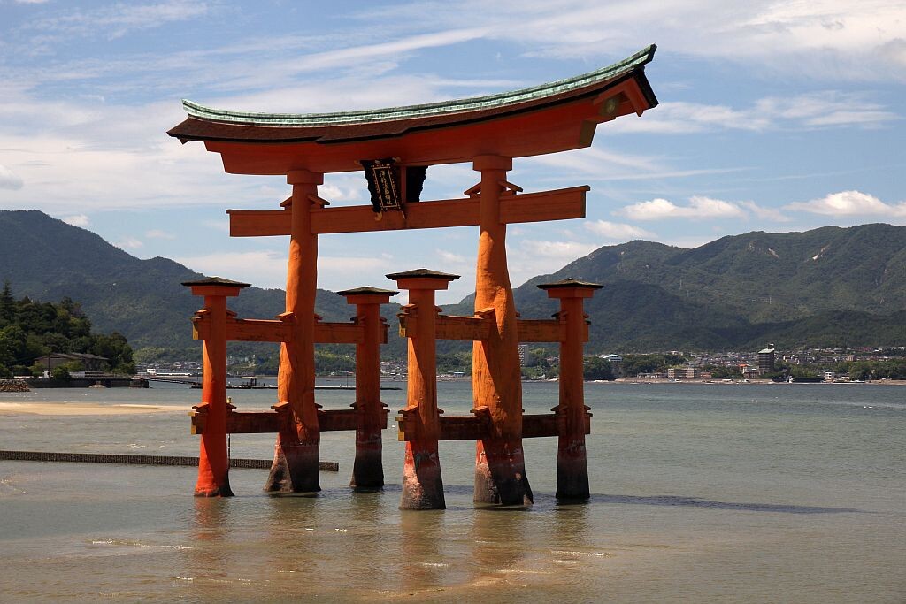 Напомню, что остров Миядзима расположен во внутреннем Японском море. По синтоистским понятиям он считается священным, и на нем не должно происходить ничего нечистого - до сих пор такими нечистыми вещами считаются роды и похороны, поэтому на острове нет ни кладбищ, ни больниц, все едут через залив в город, благо что до него всего-то полчаса, и население острова небольшое. Ицукусима — один из древнейших и почитаемых синтоистских храмов Японии, и Миядзима получила свое название от японского "остров храма". В море красные ворота-тории стоят не случайно - это тонкие материи вроде границы областей духовной жизни, но что-то подсказывает мне, что большие ценители красоты просто не могли пройти мимо эффектного сочетания спокойных красок природы и ярко-красных ворот, стоящих в воде. Храм Ицукусимы и его Ворота занесены в список Всемирного наследия ЮНЕСКО и официально являются одним из Трех знаменитых пейзажей Японии с 1643 года. Долгий путь к красным воротам в воде, часть 1 Храм Ицукусима Прямо