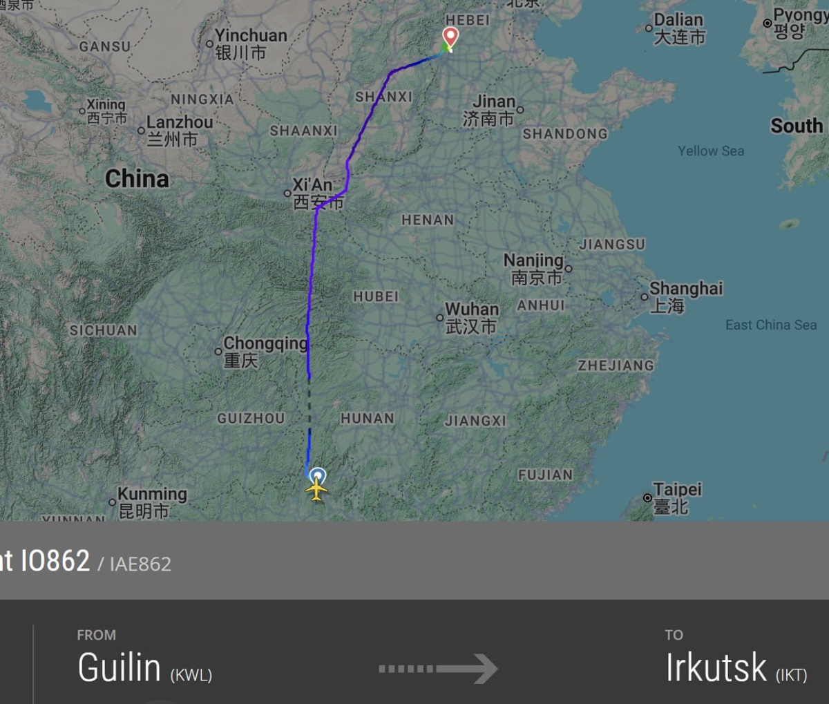 Самолет «ИрАэро», летевший 31 января рейсом IO 862 с острова Фукуок (Вьетнам) в Иркутск, дважды приземлялся в Китае: сначала в Гуйлине для