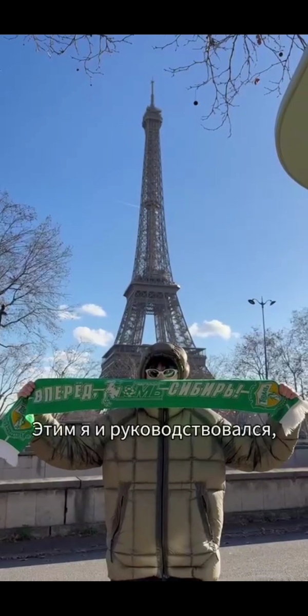 В турне по Европе фанат томичей фоткался с зелено-белым шарфом в лучших местах Милана, Ниццы, Лиона и наконец Парижа. Увы, но фейс-контроль на Парк Де Пренс не осилил надпись «Вперед, мы Сибирь!», и шарф конфисковали.