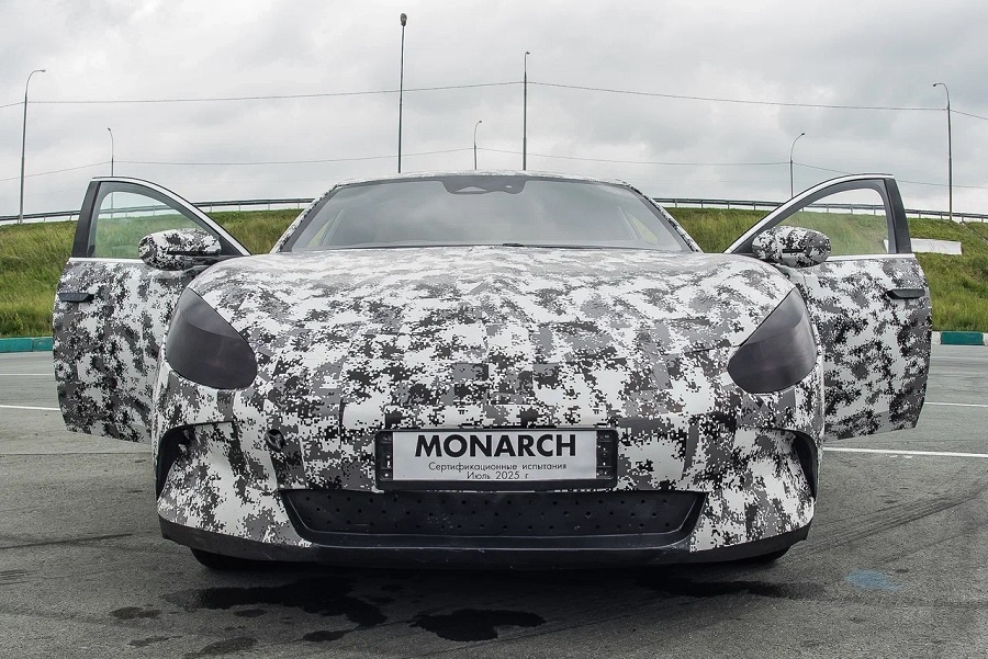 В конце июня 2025 года состоялась первая публичная демонстрация прототипа «Монарха». Но, как отмечают обозреватели, автомобиль оказался далек от заявленных характеристик и технологических решений. Многие детали были заимствованы из существующих моделей, а качество исполнения оставляло желать лучшего. Прототип демонстрировался частично закрытым, что вызвало подозрения относительно реального состояния разработки.