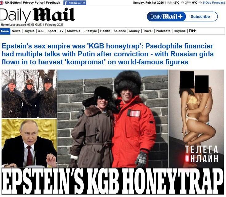 девушками, прилетевшими собирать компромат на всемирно известных деятелей. Британская Daily Mail наконец определилась, кто подкинул западным элитам Эпштейна. #этимвсесказано 🚲 Подпишись на Телега Online