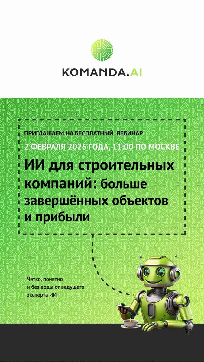 Коллеги, всех приглашаю на вебинар по интеграции ИИ в строительстве.