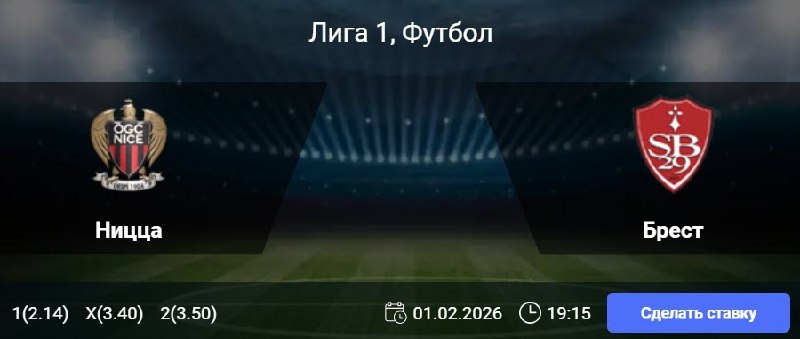 Статистика Ниццы: В шести из восьми последних матчей «Ниццы» в чемпионате обе команды отмечались голами. На своем поле «орлята» не проигрывали в девяти из одиннадцати предыдущих встреч в рамках Лиги 1, одержав семь побед при двух ничьих. В шести из семи последних игр чемпионата «Ницца» уступала в первом тайме, не забив ни одного мяча. Статистика Бреста: Клуб избежал поражения в десяти из двенадцати предыдущих матчей в Лиге 1 (две ничьи и восемь поражений). В одиннадцати из четырнадцати последних игр «Бреста» в чемпионате было забито не менее трех мячей. В одиннадцати из четырнадцати предыдущих выездных встреч в Лиге 1 команда пропускала как минимум два гола. 🎯 П1 🎲 кф (2.14) 👉 СДЕЛАТЬ СТАВКУ 🎁 ФРИБЕТ WINLINE - 3000₽ (промокод: BETWIN) 👉 СМОТРЕТЬ ПРОГНОЗ