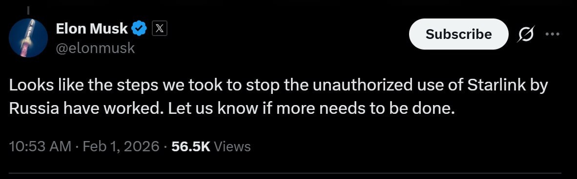 По утверждению украинской стороны, доступ к системе теперь сохраняется только у «авторизованных» терминалов, тогда как остальные будут отключены. С соответствующим заявлением выступил министр обороны Украины Михаил Фёдоров. По его словам, решение принято совместно с компанией SpaceX, а в ближайшие дни украинские власти опубликуют инструкции для пользователей по обязательной верификации терминалов Starlink. «Неверифицированные терминалы будут отключены», — заявил Фёдоров, подчеркнув, что речь идёт о полном прекращении работы «неукраинских» устройств. Фёдоров сообщил, что Киев обратился к SpaceX после появления информации о применении спутниковой связи Starlink на российских беспилотниках. По его утверждению, украинская сторона предложила «конкретные пути решения проблемы», а компания оперативно начала работу по их реализации. Министр отдельно поблагодарил президента SpaceX Гвинн Шотвелл и основателя компании Илона Маска за быстрый отклик и немедленное начало технических мер. В своём