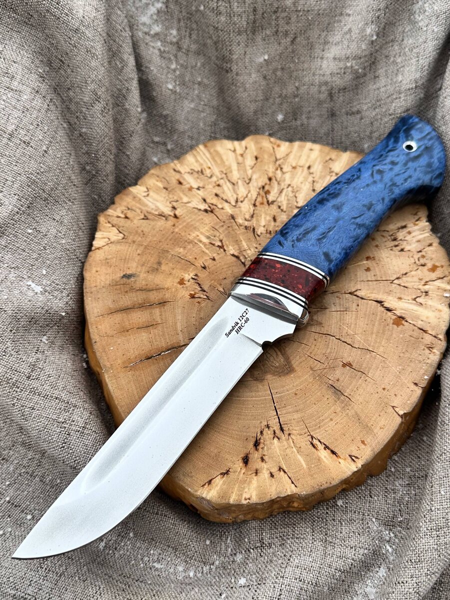 ! В наличии! 🔪 *Сталь Sandvik 12C27* (Швеция) — отличная коррозионная стойкость, высокая прочность и простота заточки. 📈 Спуски от середины клинка — *повышенная прочность* при боковых нагрузках. ⚡ *Бритвенная заточка* — рез всегда легкий и чистый. Рукоять: — *Акрил коричневый* и *стабилизированная карельская берёза* (синяя) — сочетание красоты и долговечности. — *Твердость клинка* — 60 HRC. Комплектация: — Кожаные ножны в комплекте. — *Возможность заказать формованные ножны* (+8 000₽). 💰 Цена: 11.650 ₽ 🔥 Акция: всего за 9.234 ₽! 📲 Заказывайте прямо сейчас: — Telegram: [@Nazarklinokbot](https://t.me/Nazarklinokbot) — WhatsApp: [+7 910 134-38-31](https://wa.me/79101343831) #кузницаназарова #ножручнойработы #sandvik12c27 #боевойнож #охотничийнож #подарокмужчине #ручнаяработа #стабилизированнаябереза #купитьнож