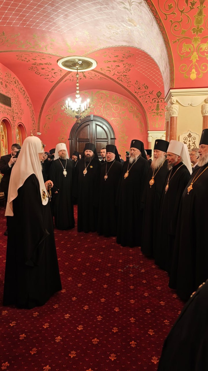 Далее архиереи Белорусского Экзархата Московского Патриархата поздравили Святейшего Патриарха Московского и всея Руси Кирилла с 17-й