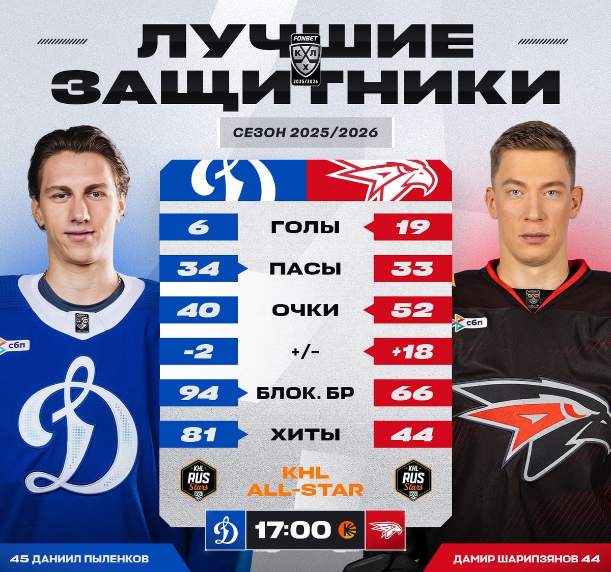 : 🔵 Даниил Пыленков проводит лучший сезон в карьере (40 очков). 🦅 Дамир Шарипзянов повторит личный рекорд регулярки (53 очка), если продлит свою 10-матчевую результативную серию (8+9). 🔵 x 🦅 17:00 мск 🍿 Эксклюзивно на Кинопоиске