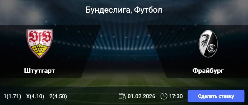 Статистика Штутгарта: В 11 из 13 последних игр «Штутгарта» в Бундеслиге голы забивались в обоих таймах. На домашнем стадионе команда не проигрывала в 9 из 10 последних матчей чемпионата (7 побед, 2 ничьи). «Штутгарт» пропускал в 5 из 6 последних домашних встреч. Статистика Фрайбурга: «Фрайбург» не смог одержать победу в 7 из 8 последних выездных матчей в Бундеслиге (3 ничьи, 4 поражения). В пяти предыдущих гостевых играх команда пропускала как минимум два мяча. В 6 из 7 последних матчей «Фрайбурга» в чемпионате обе команды забивали. 🏆 1X и ТБ (2.5) кф (1.90) 👉 СДЕЛАТЬ СТАВКУ 🎁 ФРИБЕТ WINLINE - 3000₽ (промокод: BETWIN) 👉 СМОТРЕТЬ ПРОГНОЗ