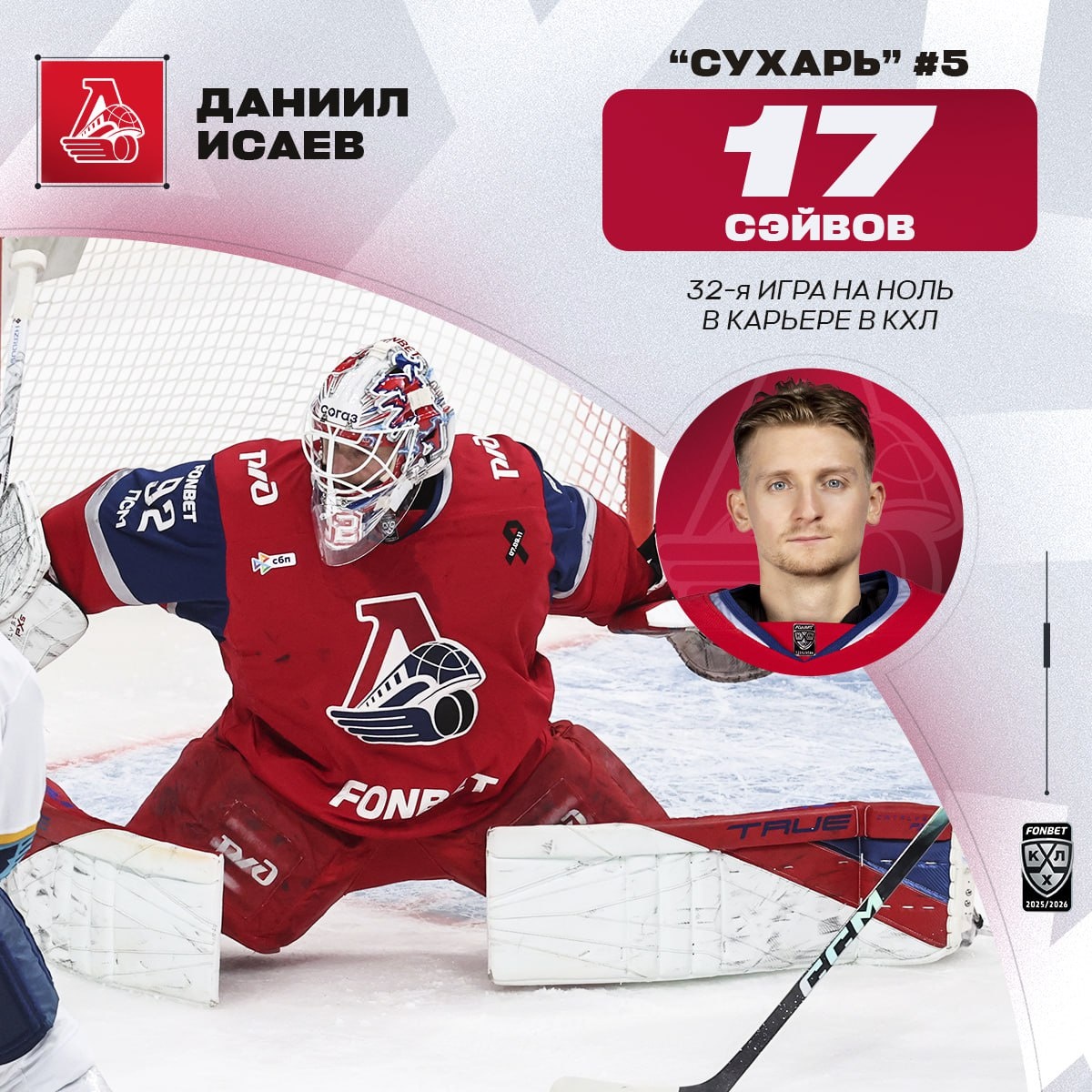 🚂 Даниил Исаев в третий раз в карьере заработал пять «сухарей» за регулярку!