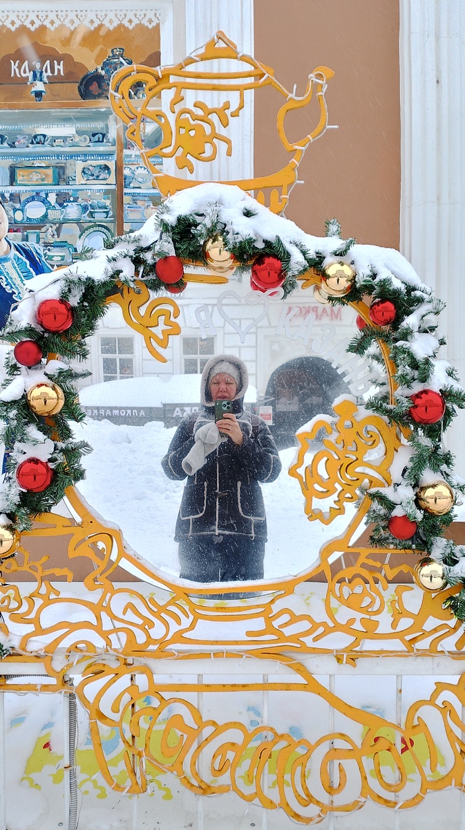 А снег все сыплет, дворникам есть чем заняться. На Баумана не стали убирать новогодние инсталляции, продлили новогоднее настроение.