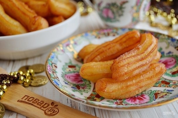 9. Извлеките из масла готовые тулумбы, погрузите их в остывший сахарный сироп на пару минут.