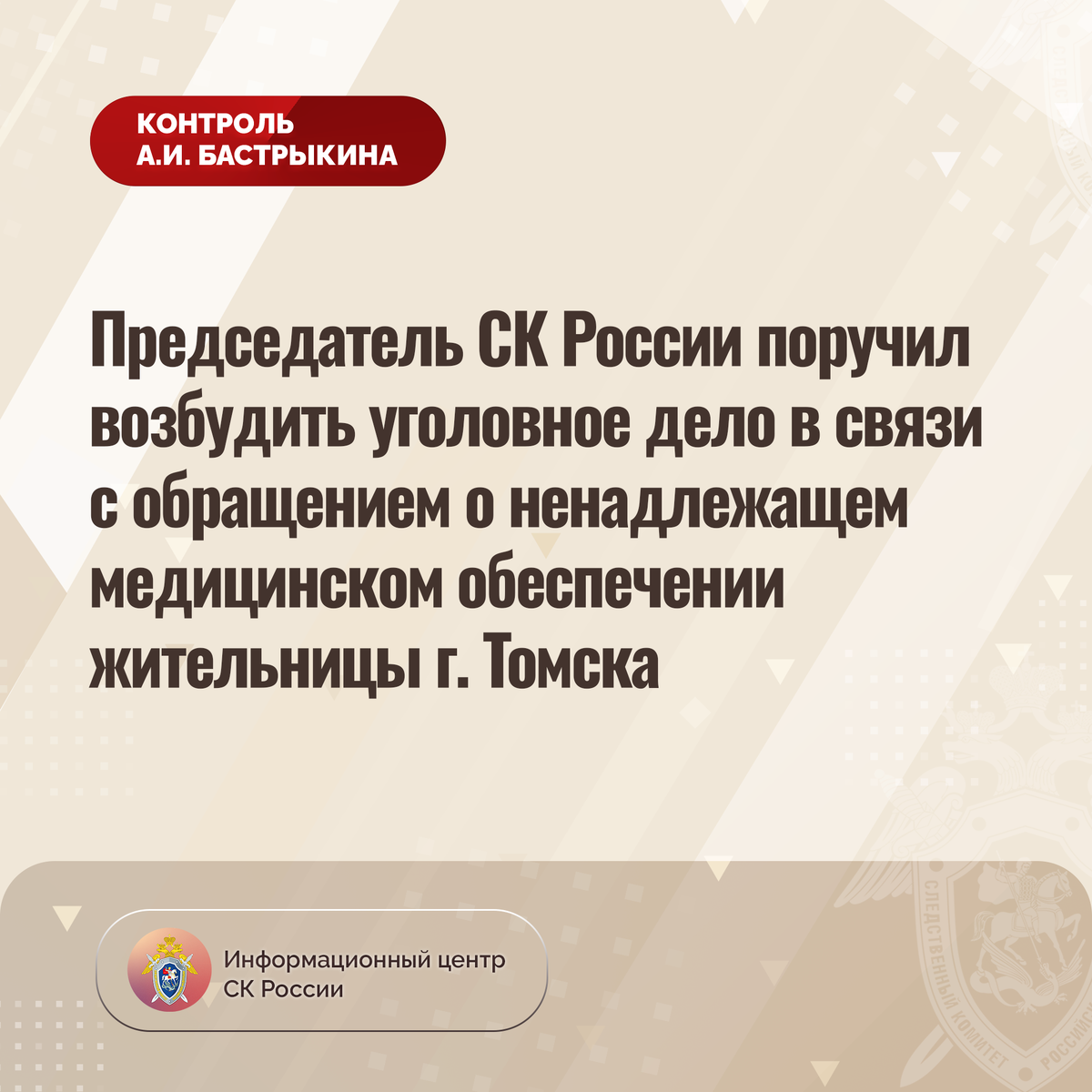 Председатель СК России поручил возбудить уголовное дело в связи с обращением о ненадлежащем медицинском обеспечении жительницы г. Томска