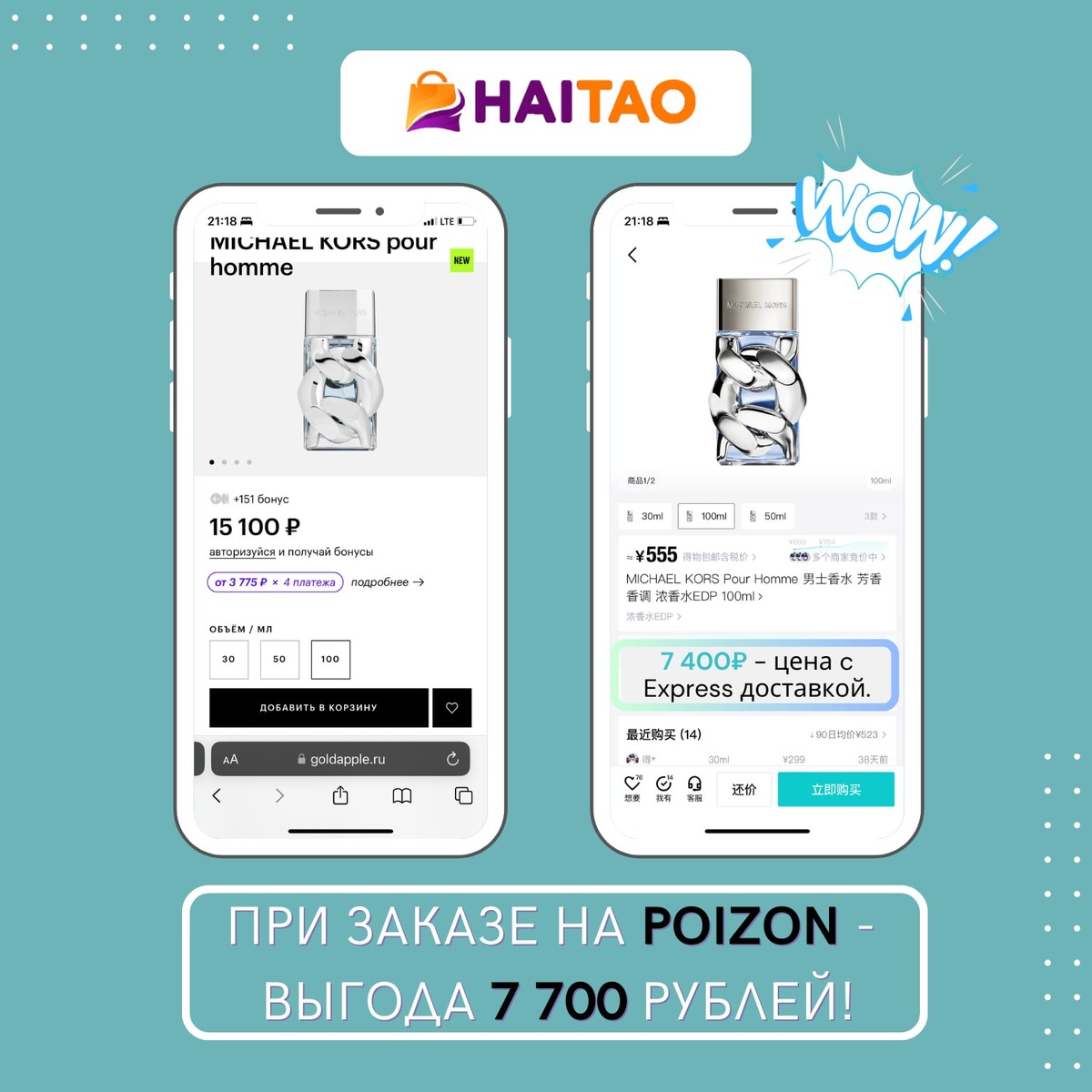 🔥 Один аромат— две цены Michael Kors Pour Homme: — цена в магазинах РФ: 15 100 ₽ — через HaiTao с Poizon: 7 400 ₽ 💥 Выгода — 7 700 ₽ Платите за аромат, а не за чужие наценки. Пишите — посчитаем вашу выгоду с HaiTao 💜 #закажисhaitao #haitao #poizon #michaelkors #купить #туалетнаявода #духи #оригинал #каргодоставка #доставкавбелую #карго #выгоднаяцена #стиль #красота