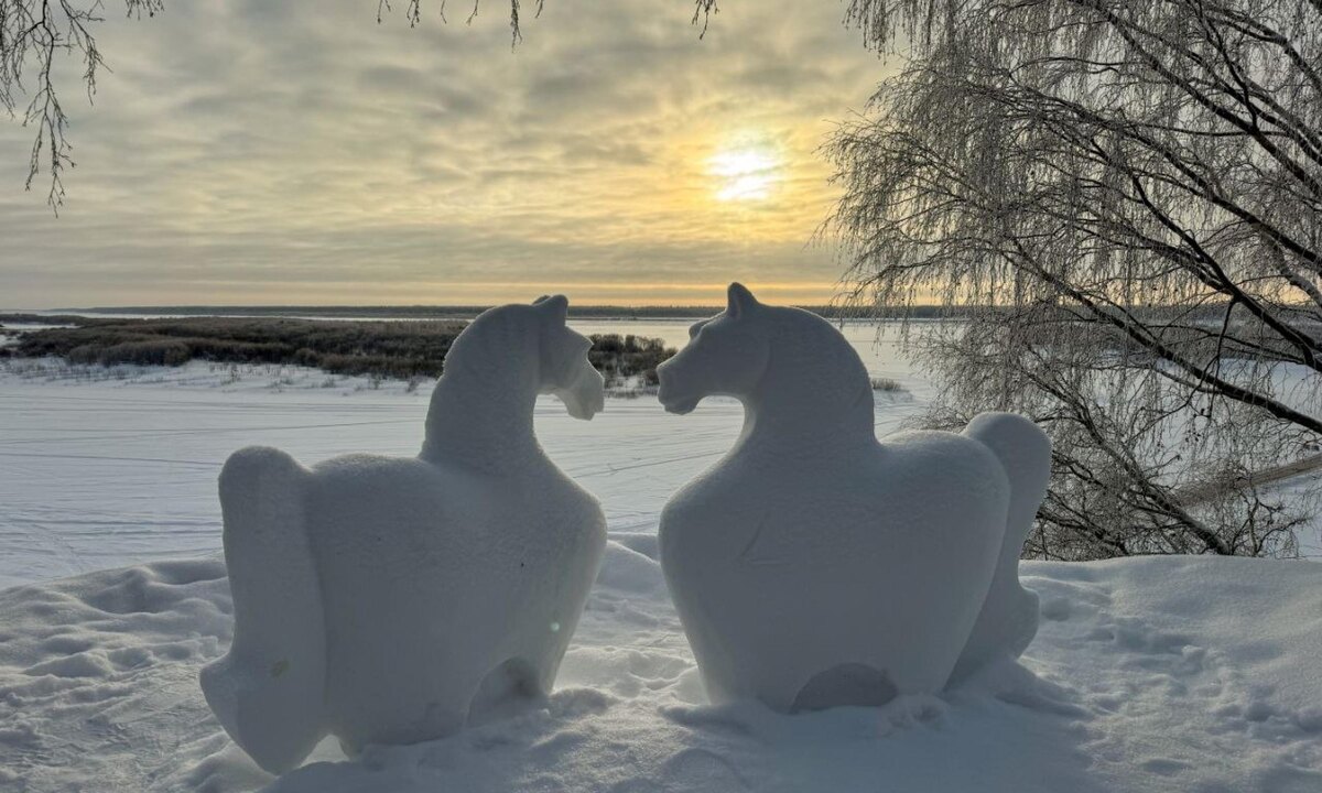Этой зимой парк возле краеведческого музея в Верхней Тойме превратился в площадку со снежными скульптурами. Здесь разместились крепость, шахматные фигуры с отсылкой к приключениям Алисы в Зазеркалье, а также композиции с изображением лошадей. — Парк возле краеведческого музея на высоком берегу Северной Двины этой зимой превратился в настоящую фотозону, — поделился губернатор Архангельской области Александр Цыбульский. Территорию украсил местный мастер и давний друг музея Николай Голубев. Проект начался с конкурса снежных фигур, который прошёл в новогодние праздники с участием семей Верхней Тоймы. Позднее инициативу продолжили созданием новых скульптур. Совместно с напарником Василием Кырнышевым Николай Голубев изготовил символ 2026 года — две снежные лошади, обращённые друг к другу. По словам мастера, композиция символизирует год лошади, а также любовь и верность. Снежные скульптуры пользуются популярностью у жителей и гостей округа: тропинка к ним остаётся утоптанной, несмотря на снег