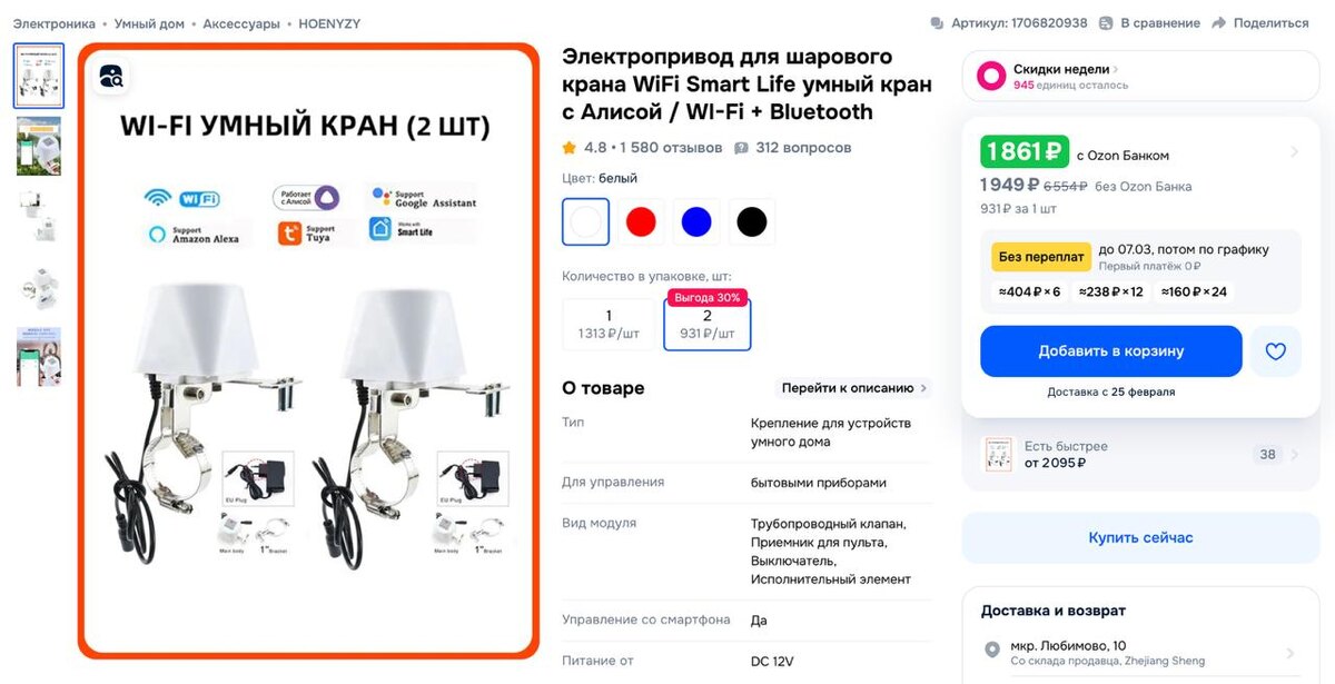 В доме я тоже сделал систему, состоящую из реле за 500 рублей и беспроводного датчика за 1300 р., которые отрубают насос. Уже несколько раз спасала. Смотрел сейчас специализированные системы от протечки, они стоят по 20+ тыс. рублей, и они без связи с умным домом. Если будет протечка, то он перекроет воду, но то, что натекло, останется. А я бы хотел, чтобы мне приходило оповещение. Можно, конечно, поставить вторые датчики. В итоге заказал приводы. Попробуем. 1800 р. за 2 шт. Пока на Wi-Fi, чтобы примеряться. Потом, если что, поменяю на точно такие же, но Zigbee, а эти на управление поливом теплиц и огорода поставлю. Еще надо будет датчики на кухню, под ванну и под всю систему в закрытую нишу вместе с инсталляцией. Они на батарейках, но за 3 года в доме мы ещё ни разу не меняли. Показывает заряд 93% в приложении. Блин, а вот им шлюз обязательно нужен. #ремонт
