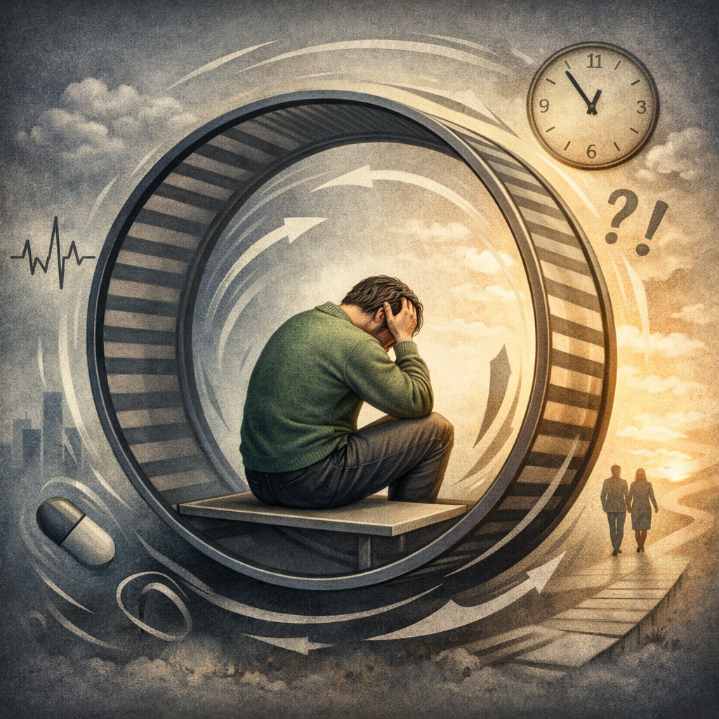 Человек начинает жить в режиме постоянного внутреннего мониторинга. Утром он проверяет, в каком состоянии проснулся. Днём отслеживает колебания тревоги. Вечером анализирует, удалось ли «справиться». Симптом становится центром внимания, вокруг которого постепенно выстраивается весь день.