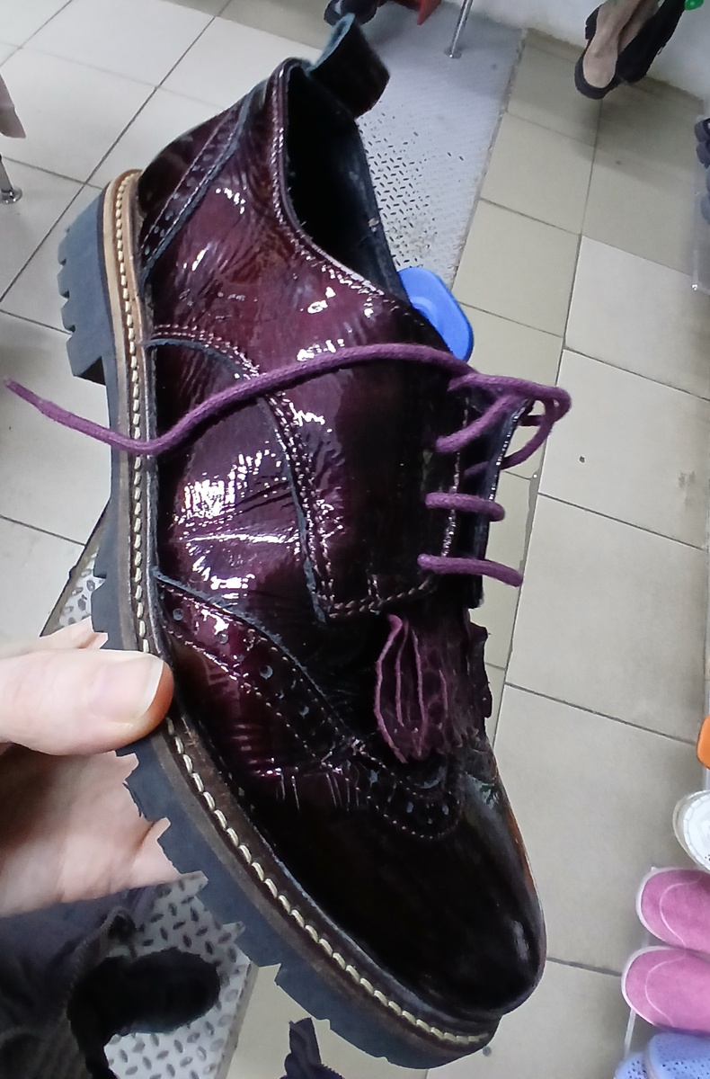 Здравствуйте, у меня муж как садится есть так включает телевизор, поэтому я тоже иногда слушаю и вникаю. Как-то гостья одного канала рассказывала, что Африка это здорово, просто идеальное место для путешествий. Только я воспринимаю информацию не так как задумывалось создателями программы, то есть восторги мне по боку, я слышу, что там гражданская движуха, но оказывается это далеко и совсем не страшно. В другой стране тоже отлично, но только, если не ходить туда куда белому человеку не надо ходить)), если делать так, то есть шанс уехать живым и здоровым. Не поеду туда пока не пойму почему у некоторых дача)) на озере Комо, а не на какой-нибудь Танганьики, а очередная вечеринка была в Куршевеле, а не на Килиманджаро. Почему среди врагов, а не в дружественной Африке? Обувь по 1500 рублей за кг. Лакированные ботинки темного цвета вишни, с бахромой. Всегда путаюсь в названиях, но если с красивой перфорацией по швам, то броги. Ботильоны из нубука. Застегиваются на ремешки с кнопками, спереди