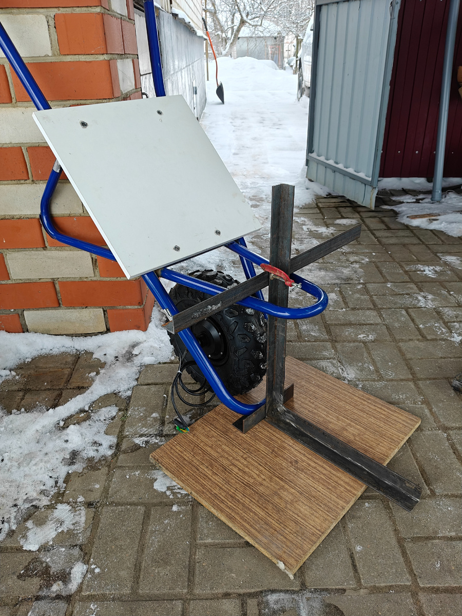 Изначально я купил нужную строительную тачку и переделал её под моторколесо.