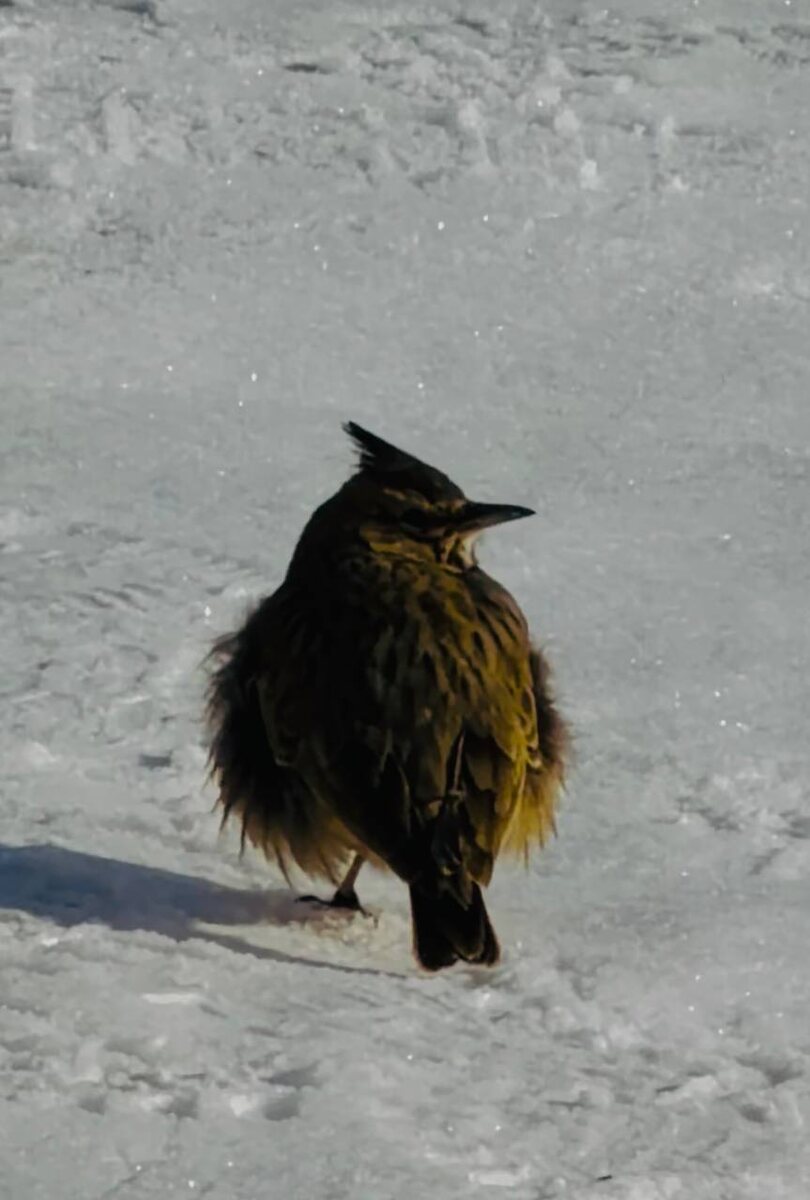 . Изумительная птичка🐦. Хохлатый жаворонок❤️. Распушился на морозе❄️. И нет, это не полевой, который символизирует приближение весны… До нее еще оочень далеко. Хохлатый жаворонок ведет оседлый образ жизни и не улетает в теплые края. Но! Он тоже очень хорошо поет. И февраль- это начало его распевок🥰. Так что прислушивайтесь и вам посчастливится услышать его прекрасные зимние песенки🎶