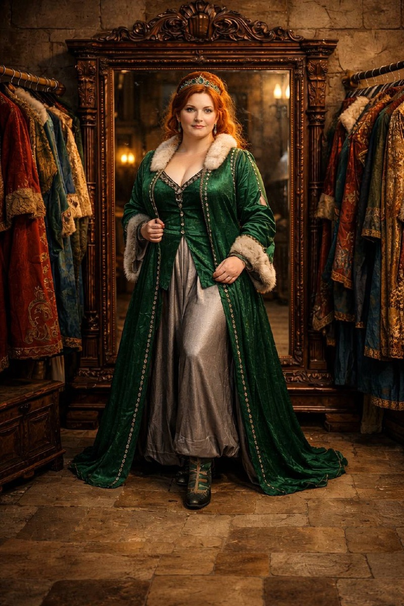 — Я предлагаю вам распашной кафтан до земли. Цвета – изумрудный и серебристо-серый. Я сделаю вышивку шелковыми нитками и стразами. Дополню мехом. И обязательно тиара. С вашими яркими волосами она может быть сдержанной, но придавать достоинства.