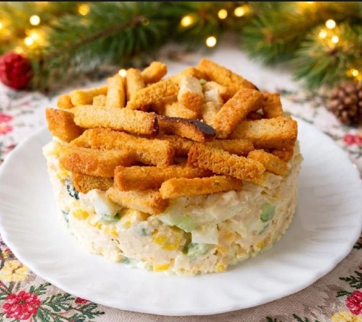 ИНГРЕДИЕНТЫ: ✅ Куриная грудка — 500 г ✅ Огурцы свежие — 3 шт. ✅ Яйца — 5 шт. ✅ Кукуруза консервированная — 1 банка ✅ Сухарики — 1 большая пачка ✅ Майонез — 150 мл ✅ Соль, чёрный перец — по вкусу ПРИГОТОВЛЕНИЕ: 1. Куриную грудку отварить до готовности, остудить и нарезать небольшими кубиками. Переложить в миску. 2. Огурцы вымыть, нарезать кубиком и добавить к курице. 3. Яйца заранее отварить вкрутую, остудить, очистить и нарезать кубиками. Добавить в салат. 4. С кукурузы слить жидкость и высыпать её к остальным ингредиентам. 5. Посолить и поперчить по вкусу, добавить майонез и хорошо перемешать. 6. Сухарики добавлять непосредственно перед подачей или подавать отдельно, чтобы они оставались хрустящими. ПРИЯТНОГО АППЕТИТА!😋