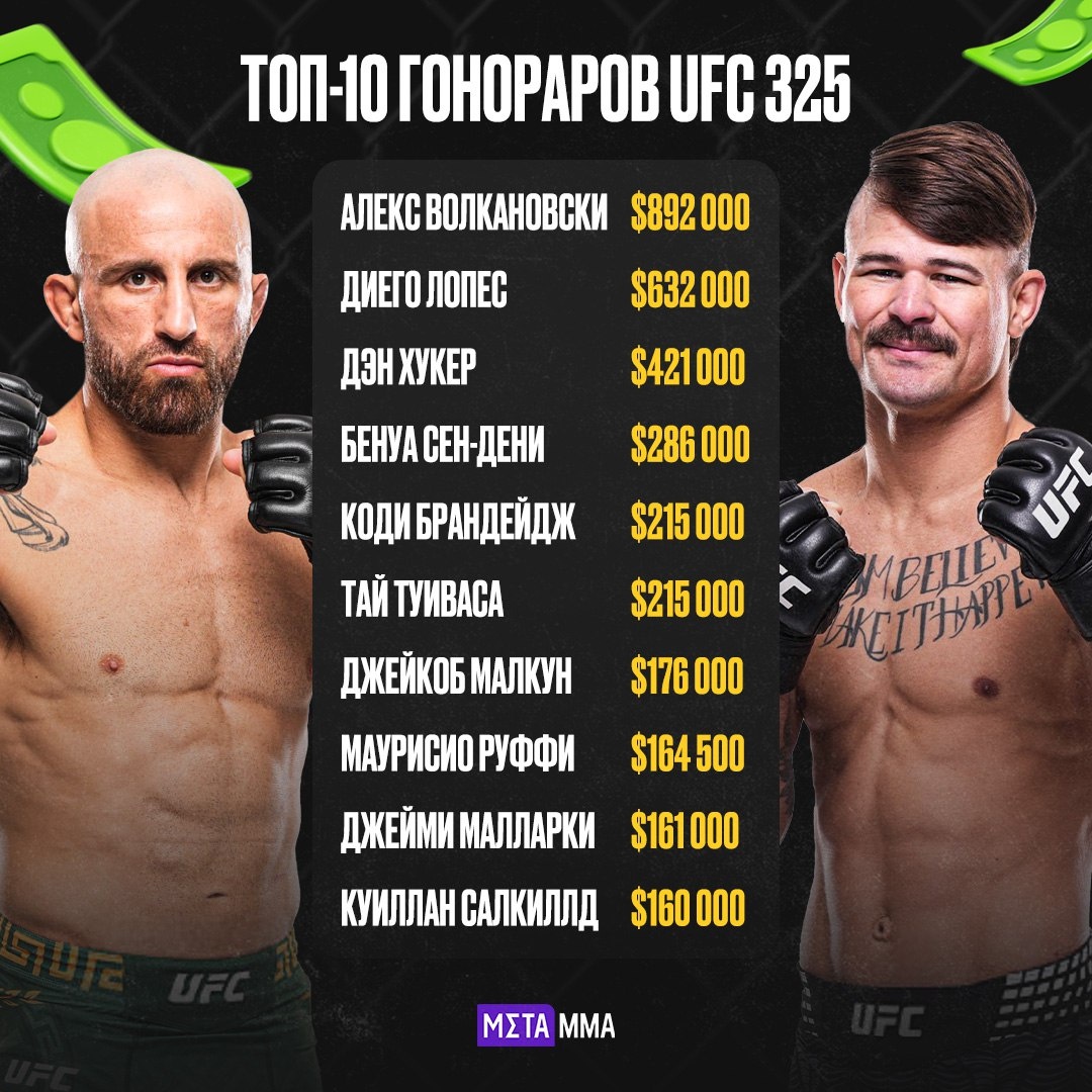 🔥💰 Волкановски и Лопес заработали 1,5 млн долларов, Физиев – лишь 110 тысяч: гонорары UFC 325