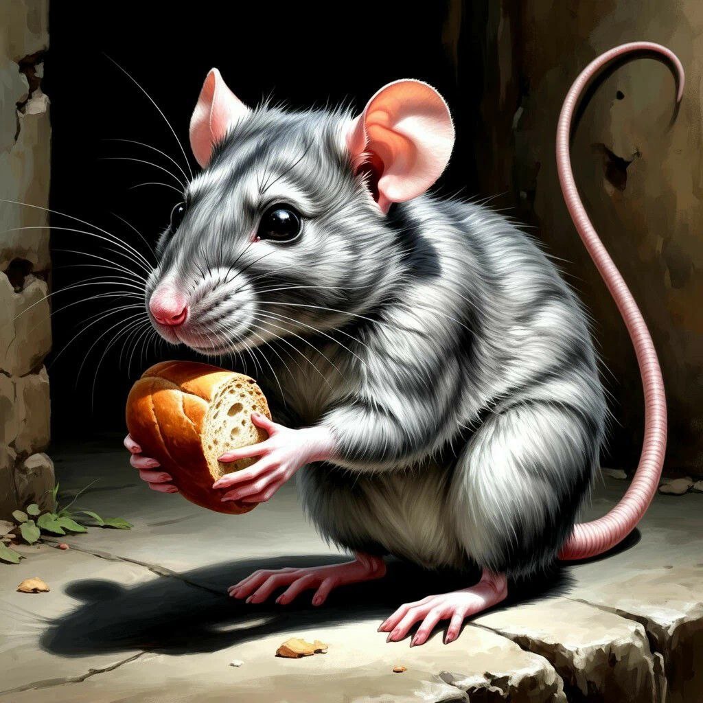 ». И на очереди у нас следующий персонаж, с кем Кекс встретился на своём пути и кто стал его верной спутницей в его путешествиях на долгие годы. Крыса Муха Она не верит в героев, но верит в долг. Муха — маленькая бело‑серая крыса с контрастной расцветкой: серая голова, белая борода, тело бело‑серое. Характер: колючая, язвительная крыса с острым языком и ещё более острым слухом, чья саркастическая броня скрывает глубокую уязвимость одинокого животного, учившегося выживать в одиночку. Арка: путь от одинокого существа с девизом «каждый сам за себя» до верного друга. Мотивация: страх быть отвергнутой снова и желание обрести ту самую семью, необходимость которой отрицает на словах. Символ: Муха — олицетворение одиночества в мире без чувств. Воплощение практической житейской мудрости. Её жертвенность доказывает, что самые громкие шутки часто прячут самые тихие слёзы. «Она непослушная, постоянно тявкает и всем мешает спать, мы в шутку называем её „шавкой“. Но всё равно пушистая, мила