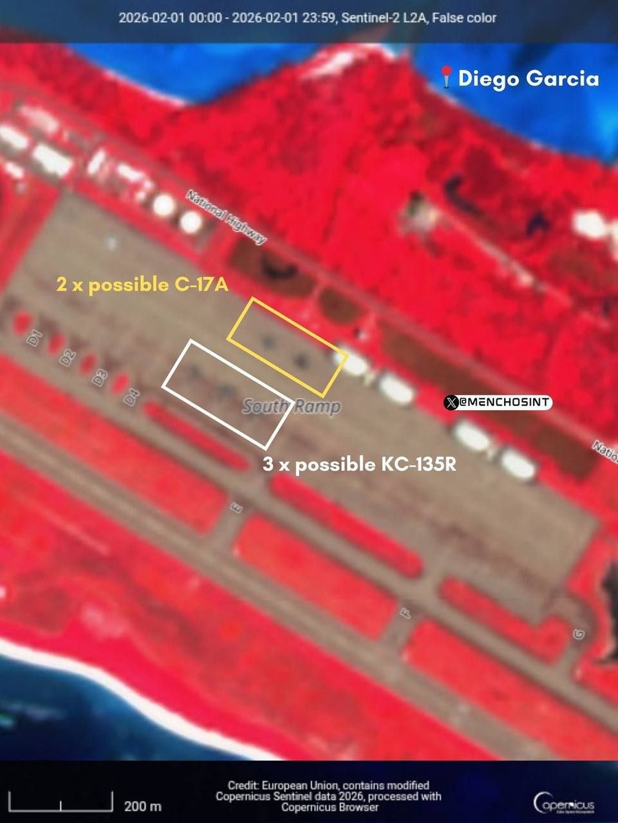 Спутниковый снимок американской базы Диего-Гарсия сегодня утром — на базе нет американских бомбардировщиков