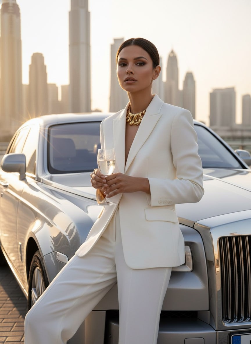 Эстетика Old Money и Rolls-Royce Nano Banana / SeeDream 🔥 Делаем контент уровня «жена миллиардера» без лишних трат на аренду. Закидываешь своё лучшее селфи в @SnapToVideo_bot, копируешь промпт — и ты уже в центре Дубая или Лондона рядом с люксовой тачкой. ⚡️ Используя загруженное селфи в качестве точного эталона лица со 100-процентным совпадением (--face_fidelity 1.0), создайте фотографию по описанию, сохранив полное сходство с оригиналом. Кинематографичный [редакционный fashion-портрет] женщины рядом с роскошным [серебристо-серым Rolls-Royce Phantom]. Она [элегатно прислонилась к капоту автомобиля, глядя прямо в камеру]. Одета в [белоснежный брючный костюм из тонкой шерсти с широкими брюками и приталенным жакетом на голое тело, дополненный массивным золотым колье]. В руках [тонкий бокал с прохладным напитком]. Действие происходит в [современном районе Дубая на фоне футуристичных небоскребов]. [Тёплый свет заходящего солнца] создает длинные тени и золотистые блики на хроме машины.