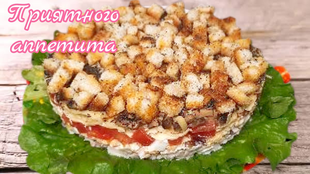 Ищите неизбитый рецепт салата? Ловите новенький и очень вкусный слоеный салат, который не только украсит Ваш стол, но и порадует всех гостей своим насыщенным вкусом и оригинальной подачей. Представляю Вам рецепт салата "Курочка под шубкой" – яркого и аппетитного блюда, которое станет настоящей находкой для любого застолья! Этот салат – не просто вариация на тему классической "Селедки под шубой". Он более нежный, сытный и интересный по текстуре. Куриное филе придает ему легкость, а сочетание овощей - создает богатый и сбалансированный вкус. "Курочка под шубкой" идеально подходит для праздничного стола, дня рождения или просто для семейного ужина. Он легко готовится, выглядит эффектно и точно понравится всем без исключения. В этой статье я поделюсь с Вами подробным рецептом и секретами приготовления этого восхитительного салата. Вы узнаете, как правильно подготовить ингредиенты, как сделать салат по-настоящему сочным и как красиво его подать. Перед подачей посыпьте салат сухариками и об