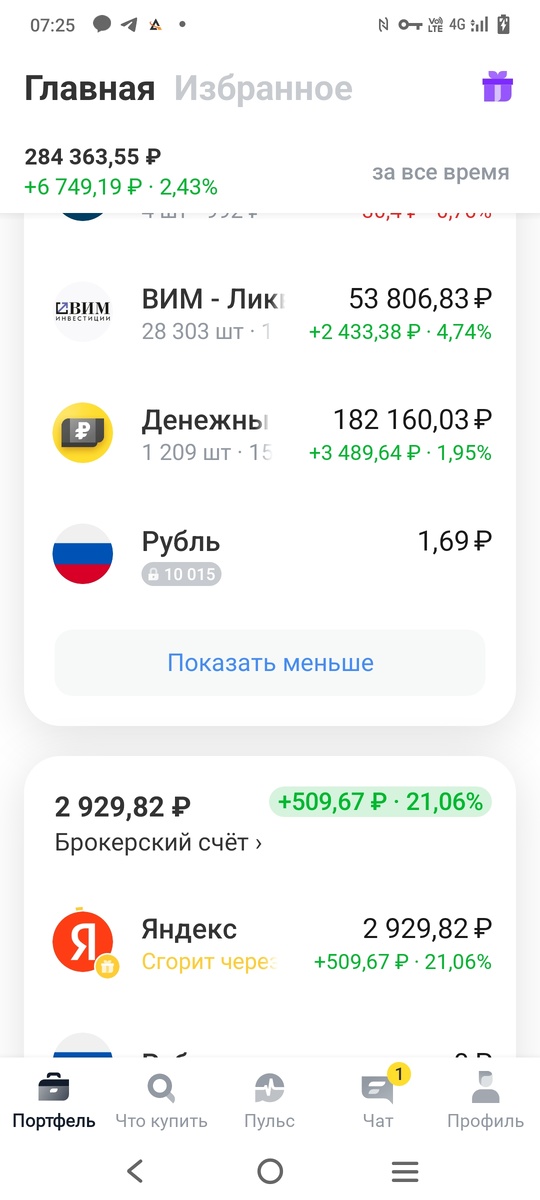 Мой фонд денежного рынка и вим ликвидность на общую сумму 235 т.руб. приносит в день от 100 до 150 руб.