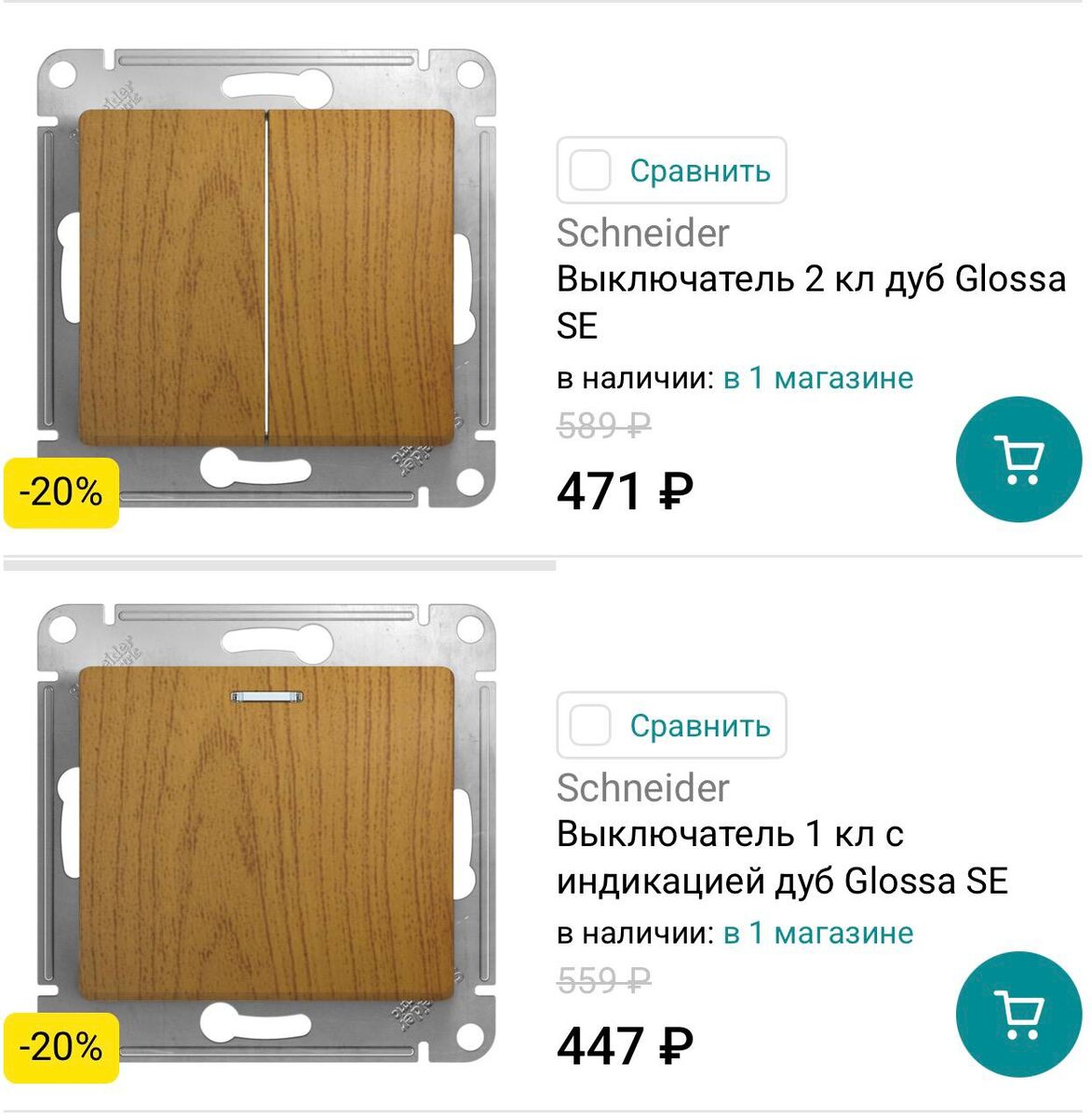 ! ⚡️ Друзья, только в гипермаркете «Технодром» — скидка 20% на всю коллекцию розеток и выключателей Glossa (включая рамки и диммеры) — стильная отделка «дуб», серия Glossa SE. В акции участвует 22 позиции: розетки, выключатели, рамки, диммеры — отличное время обновить электрику в доме или на даче. Подробнее и весь ассортимент — на странице акции: Технодром — Скидки 20% на розетки и выключатели Glossa.). Примеры цен со скидкой: - Розетка 1м TF RJ11 дуб Glossa SE — было 649 ₽ → теперь 519 ₽. - Розетка 2м комп+TF дуб Glossa SE — было 1 299 ₽ → теперь 1 039 ₽. - Диммер поворотный 300 Вт дуб Glossa SE — было 4 199 ₽ → теперь 3 359 ₽. - Выключатель 2 кл дуб Glossa SE — было 589 ₽ → теперь 471 ₽. (Полный перечень — на странице акции.) Успейте обновить розетки и выключатели — стильно, надёжно и выгодно! 🔧🏡